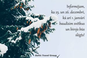 Tuvojas Ziemassvētki, informējam par mūsu brīvdienām. Jautājumu gadījumā, mūsu kontaktus meklējiet šeit: http://www.businesstravel.lv/lv/uznemums/komanda/